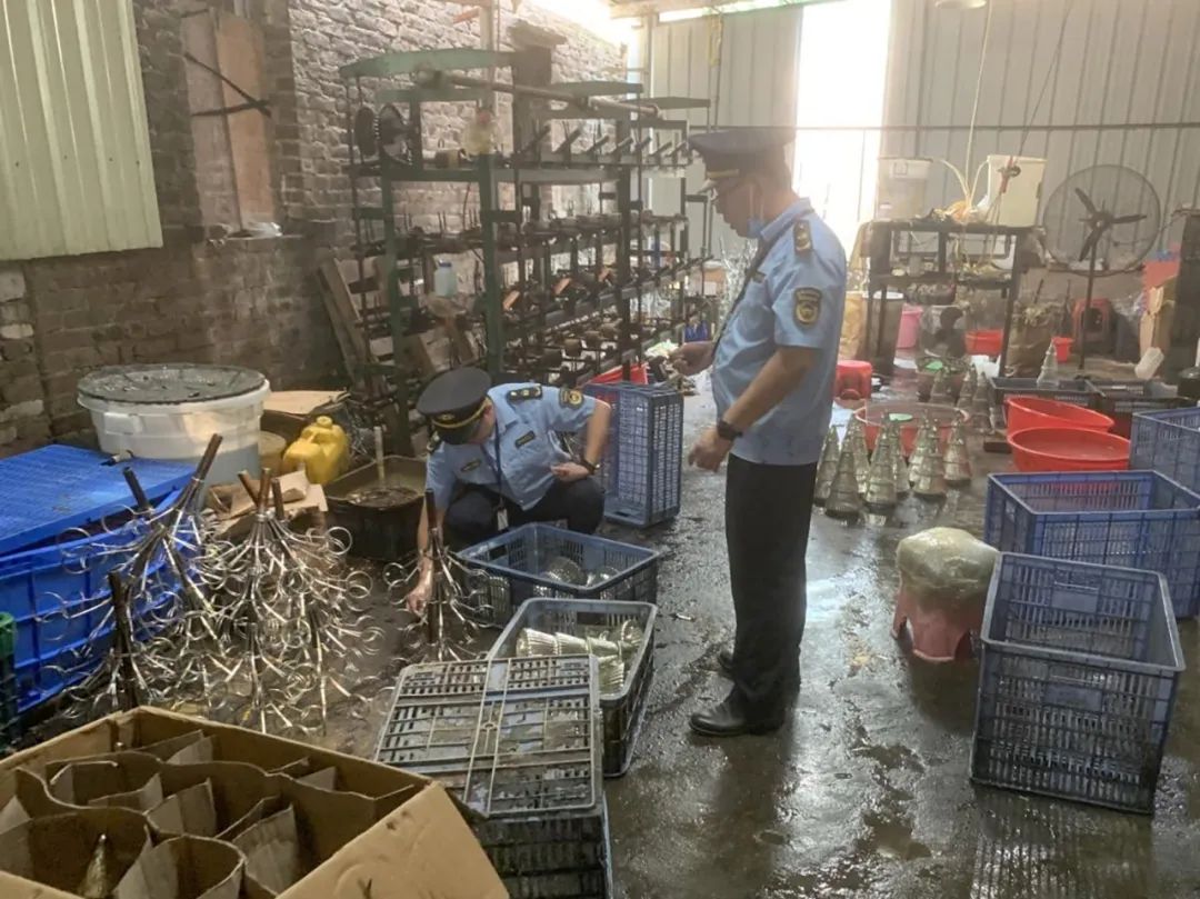 針對該作坊的環(huán)境違法行為,執(zhí)法人員立刻調(diào)查取證,并對外環(huán)境排放口、車間地面積水等進行取樣監(jiān)測。現(xiàn)場責(zé)令該作坊立刻停止生產(chǎn),并依法查封清洗車間電源。