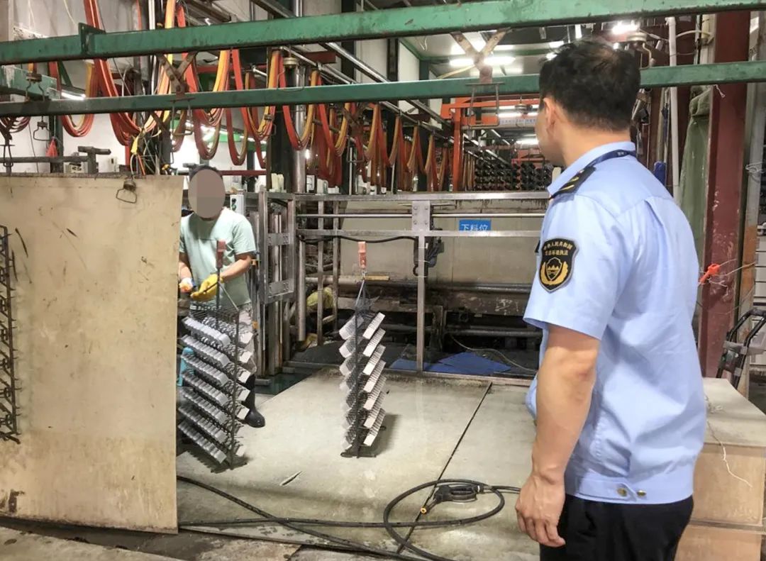 此后,橋頭生態(tài)環(huán)境分局多次對該企業(yè)進(jìn)行復(fù)查,雖未發(fā)現(xiàn)該企業(yè)存在現(xiàn)場生產(chǎn)行為,但有生產(chǎn)跡象。2023年5月5日,橋頭生態(tài)環(huán)境分局對該企業(yè)進(jìn)行突擊檢查,發(fā)現(xiàn)該企業(yè)仍未完成驗收,并擅自重新啟用新增的6條半自動陽極氧化線等生產(chǎn)設(shè)備。執(zhí)法人員立即鎖定證據(jù),依法立案查處。