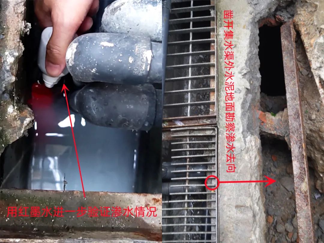 經(jīng)查,該公司主要從事耳機相關(guān)零部件生產(chǎn),已辦理環(huán)保審批和驗收手續(xù),已完成雨污分流整改,已取得排水證,環(huán)評及批復(fù)允許設(shè)置研磨、清洗、注塑、機加工等工序。執(zhí)法人員現(xiàn)場檢查時,該公司正在生產(chǎn),研磨廢水經(jīng)車間明渠收集至廢水治理設(shè)施處理。執(zhí)法人員排查發(fā)現(xiàn)兩個問題,一是該公司擅自增設(shè)鈍化工序(已使用5桶鈍化液),鈍化液經(jīng)測試pH值約1(強酸性);二是研磨廢水雖沿明渠流至廢水處理設(shè)施收集,但調(diào)節(jié)池水位未見升高,不符合常理。執(zhí)法人員通過試水實驗、鑿開排放口、查證雨污分流CAD圖紙等方法,最終發(fā)現(xiàn)在三根水管擋住的集水渠側(cè)壁與集水渠底部交界處存在一個孔洞,部分研磨廢水正在從該處流出至外環(huán)境。